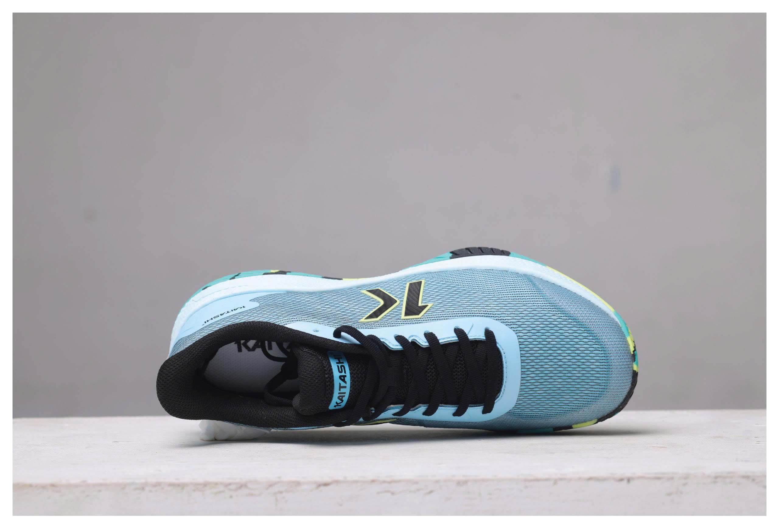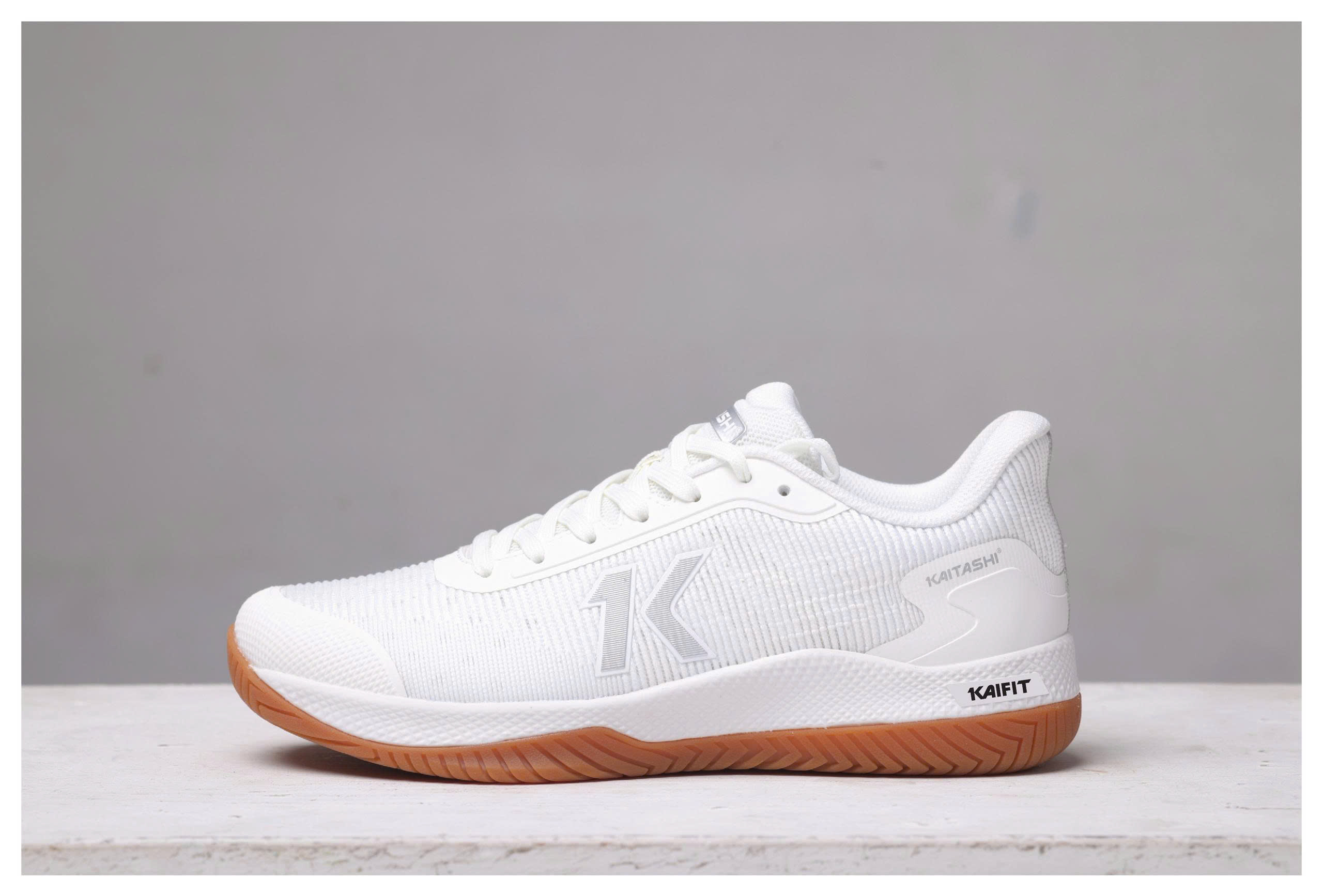 Điểm nổi bật của Kaitashi Shin Kai nằm ở cấu trúc đế Kaifit được thiết kế dành riêng cho thể thao sân. Phần outsole sử dụng họa tiết xương cá trải rộng toàn bộ bề mặt tiếp xúc, giúp tăng ma sát với mặt sân trong nhà và sân acrylic ngoài trời. Độ bám rõ ràng giúp người chơi tự tin khi thực hiện các động tác xoay người, đẩy ngang hoặc bứt tốc ngắn.