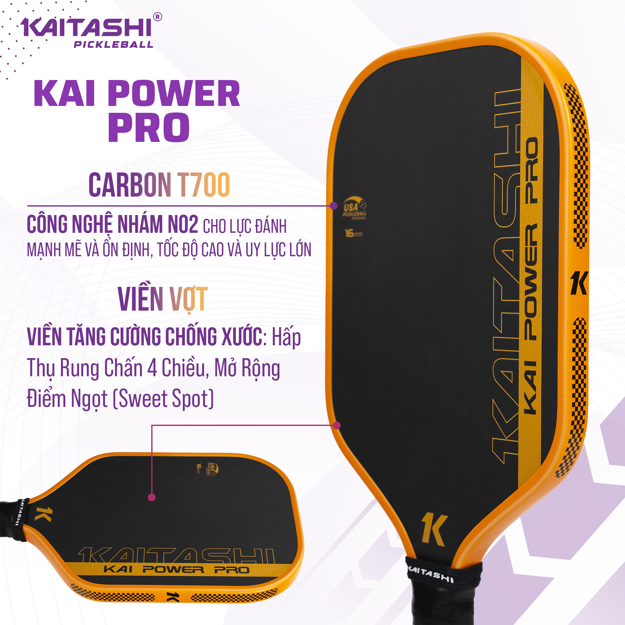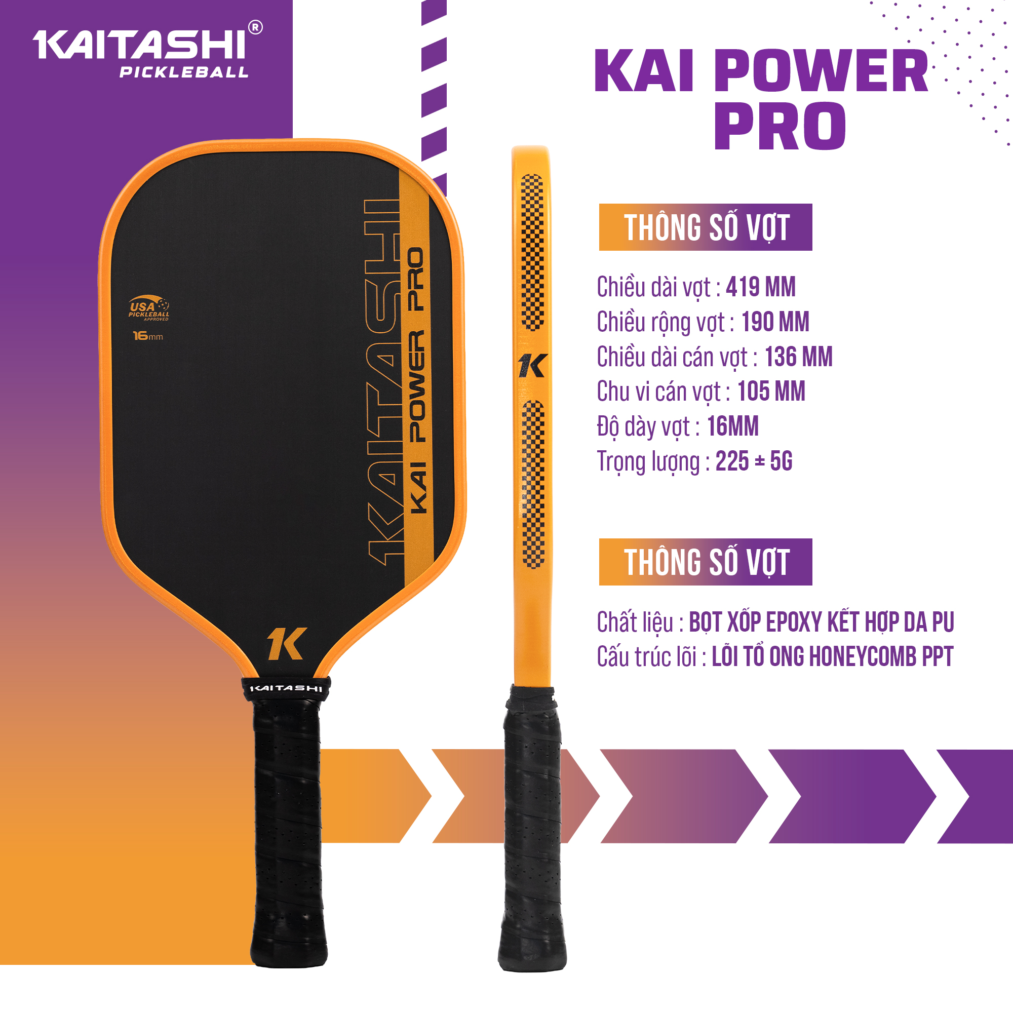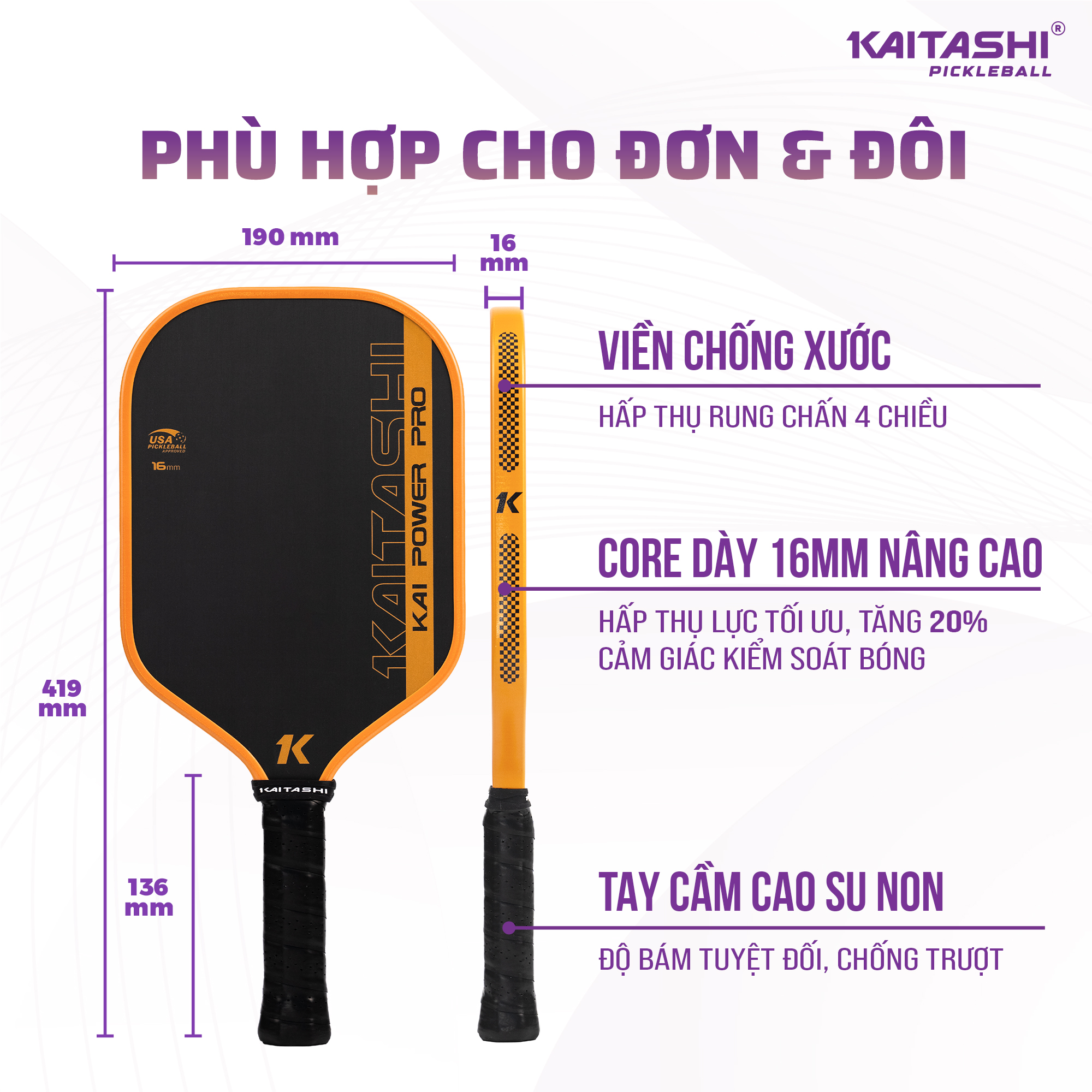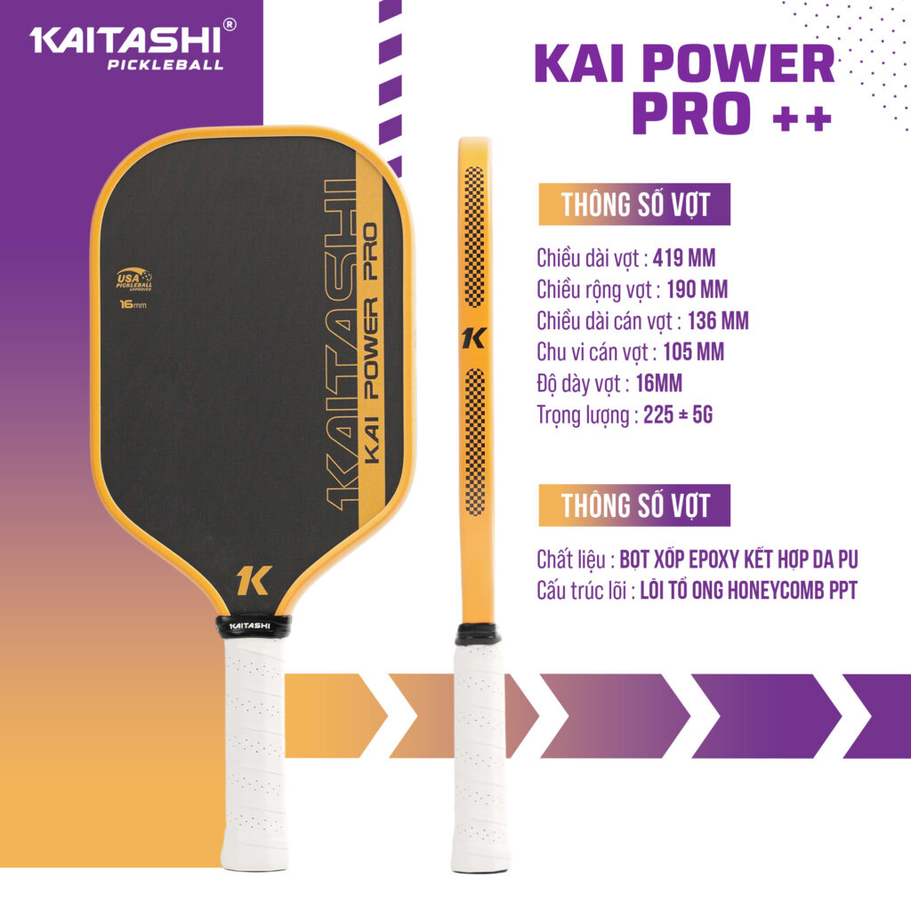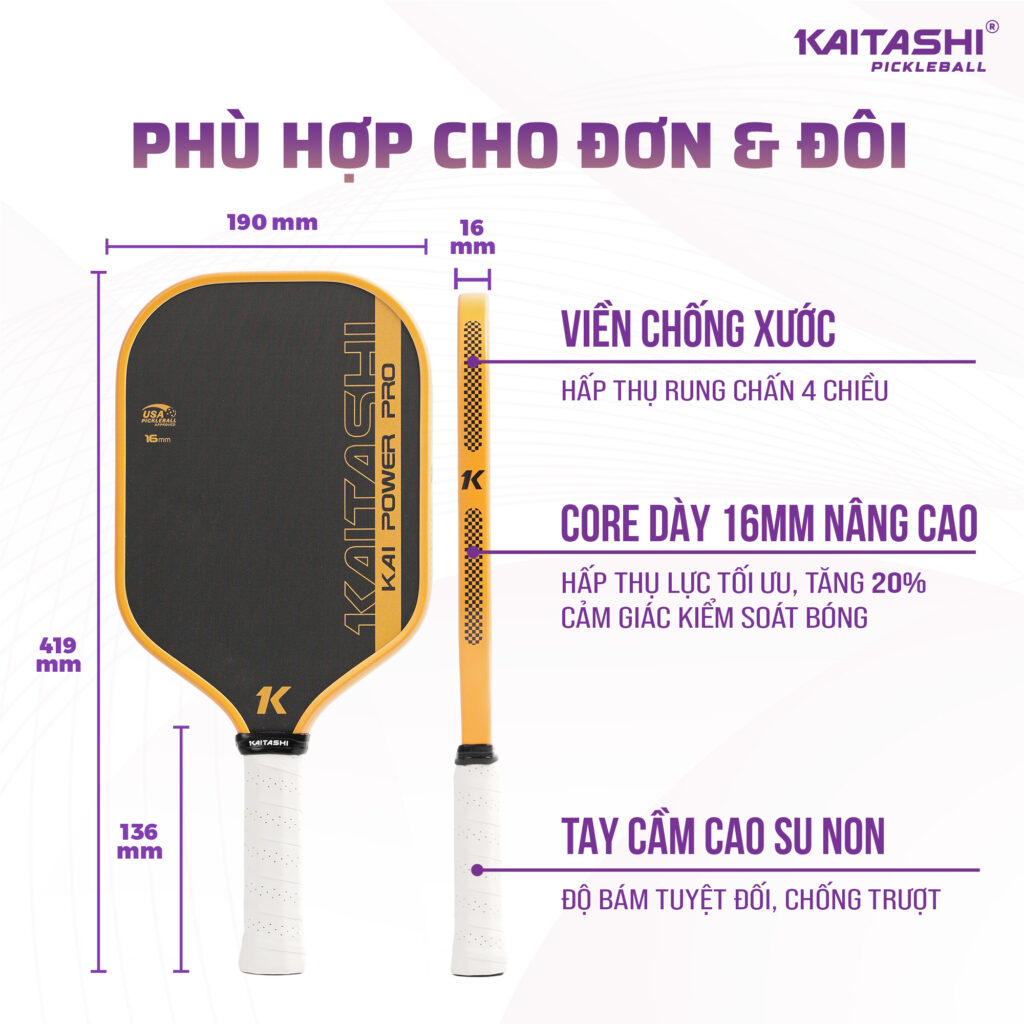 Thông số kỹ thuật vợt pickleball Kaitashi Kai Power Pro