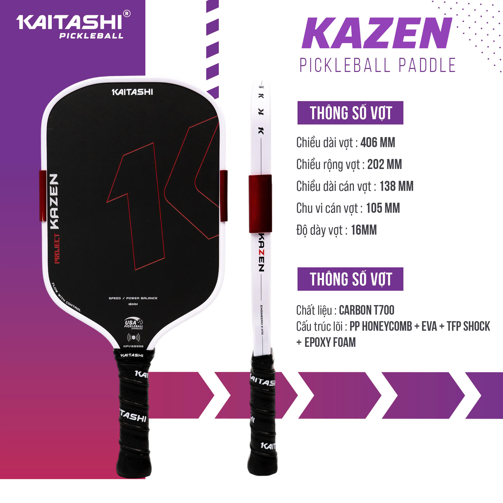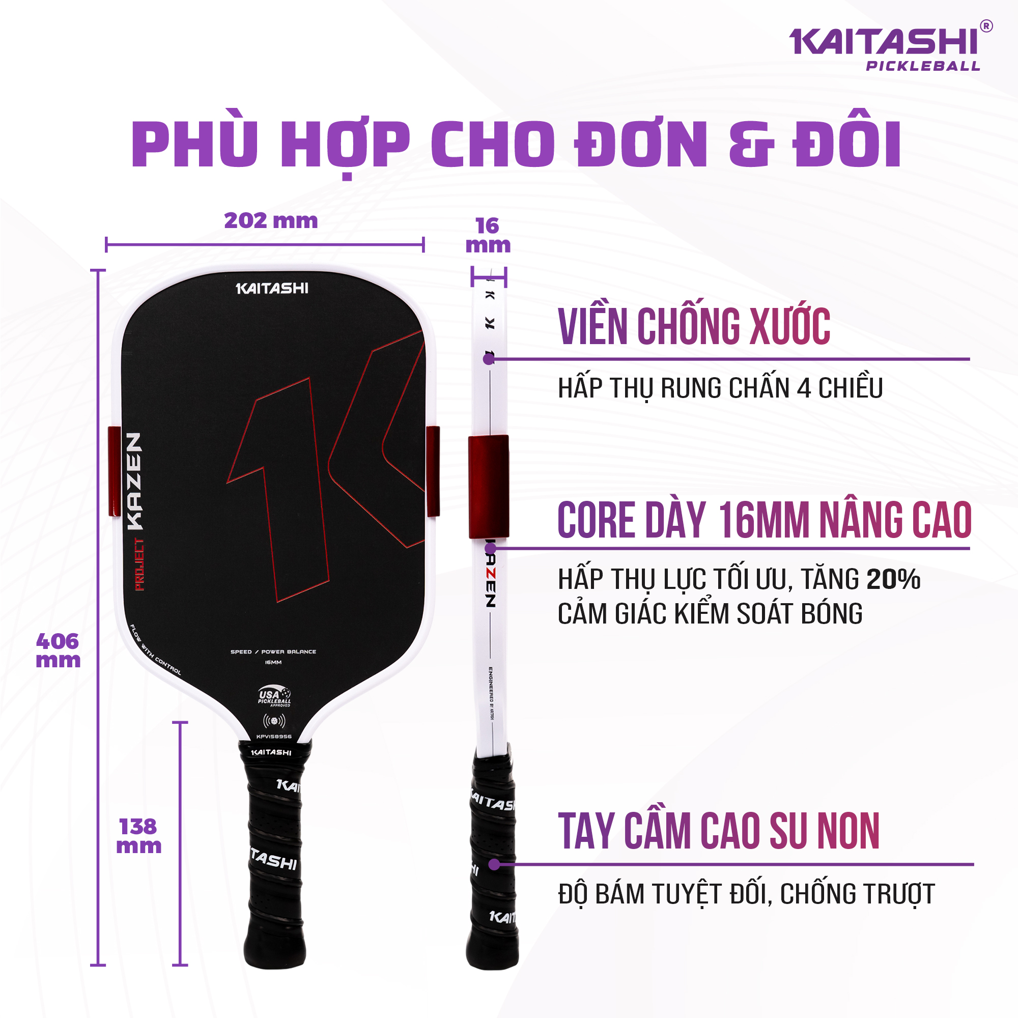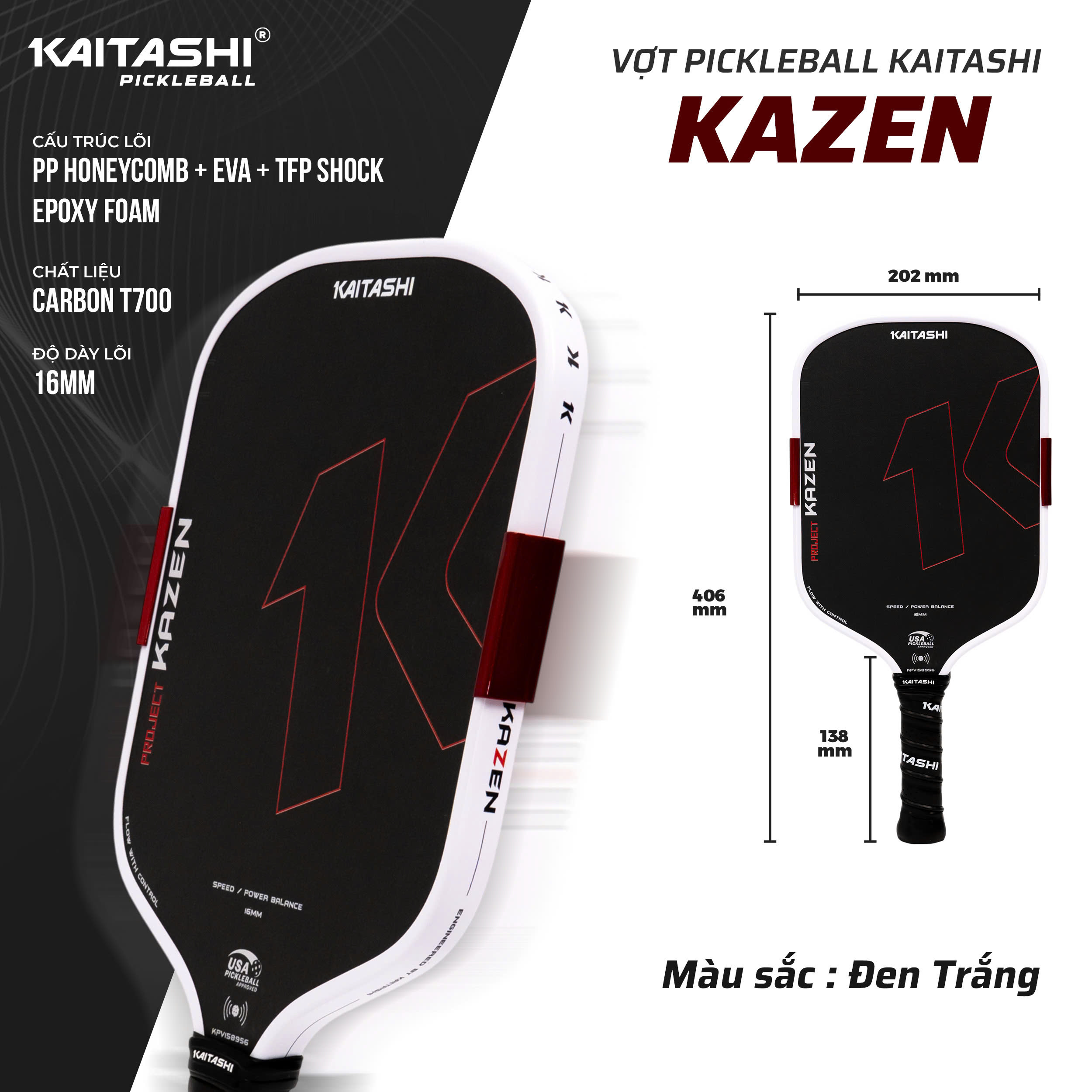 Thông số kỹ thuật vợt pickleball Kaitashi Kazen
